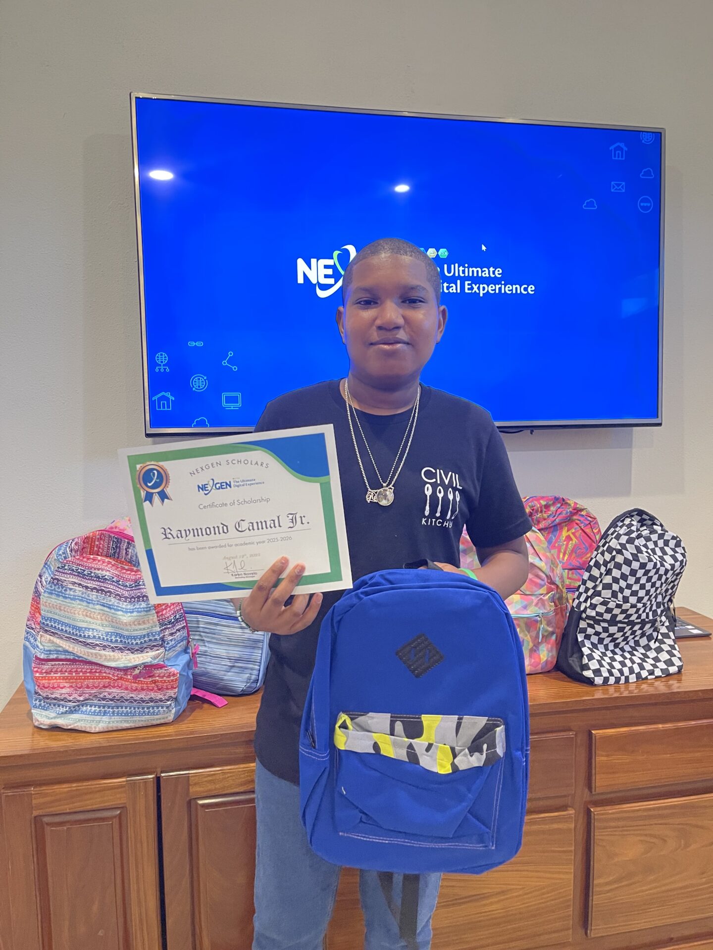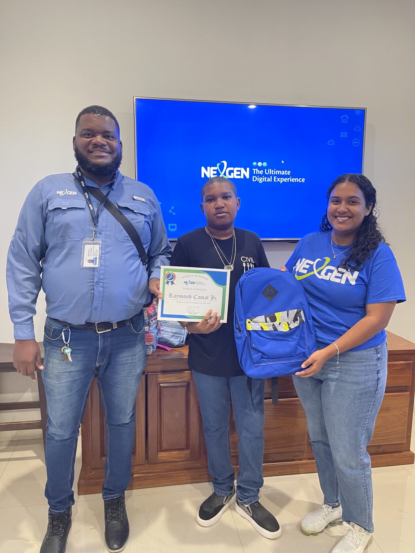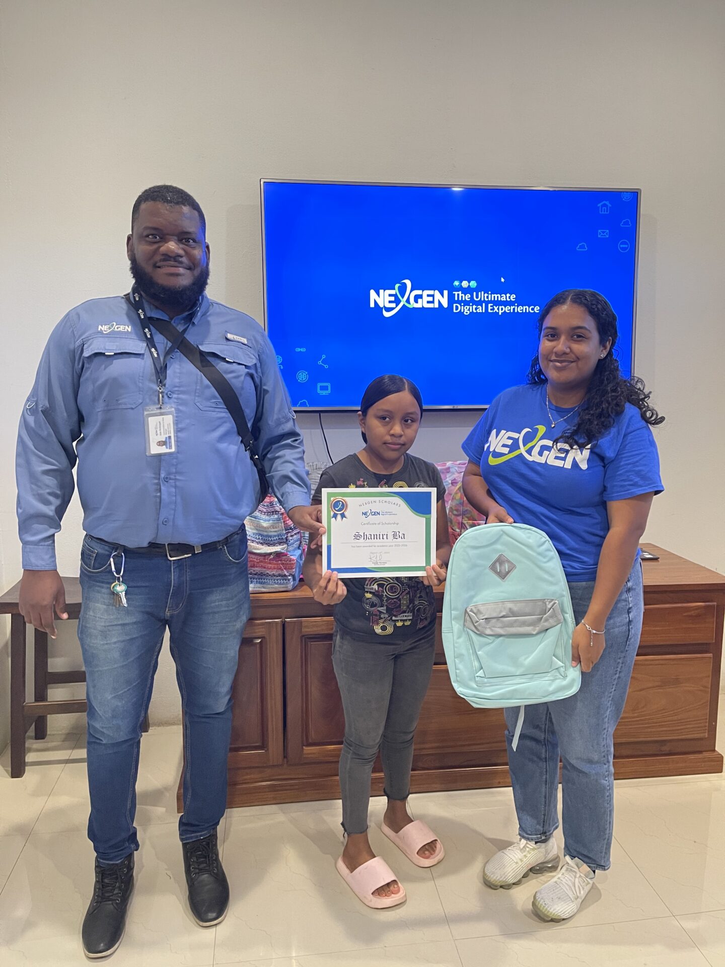 Red Creek, Cayo District – August 14, 2025 – On Tuesday, August 12, Nexgen provided scholarships to two deserving students at its Belmopan office. The recipients, Shaniri Ba and Raymond Camal, Jr., received their certificates, a backpack, and a Nexgen pledge that their school fees will be covered for the next year. Ms. Ba is going into first form at Our Lady Guadalupe R.C. High School (OLOG) and Mr. Camal will go into second form at Belmopan Methodist High School. The scholarship includes fees, tuition, and other incidentals, along with free internet for the entire school year. Both students are part of the Belize Police Department’s Community Outreach initiatives, led in Belmopan by PC Moore. The organization also received 50 backpacks.