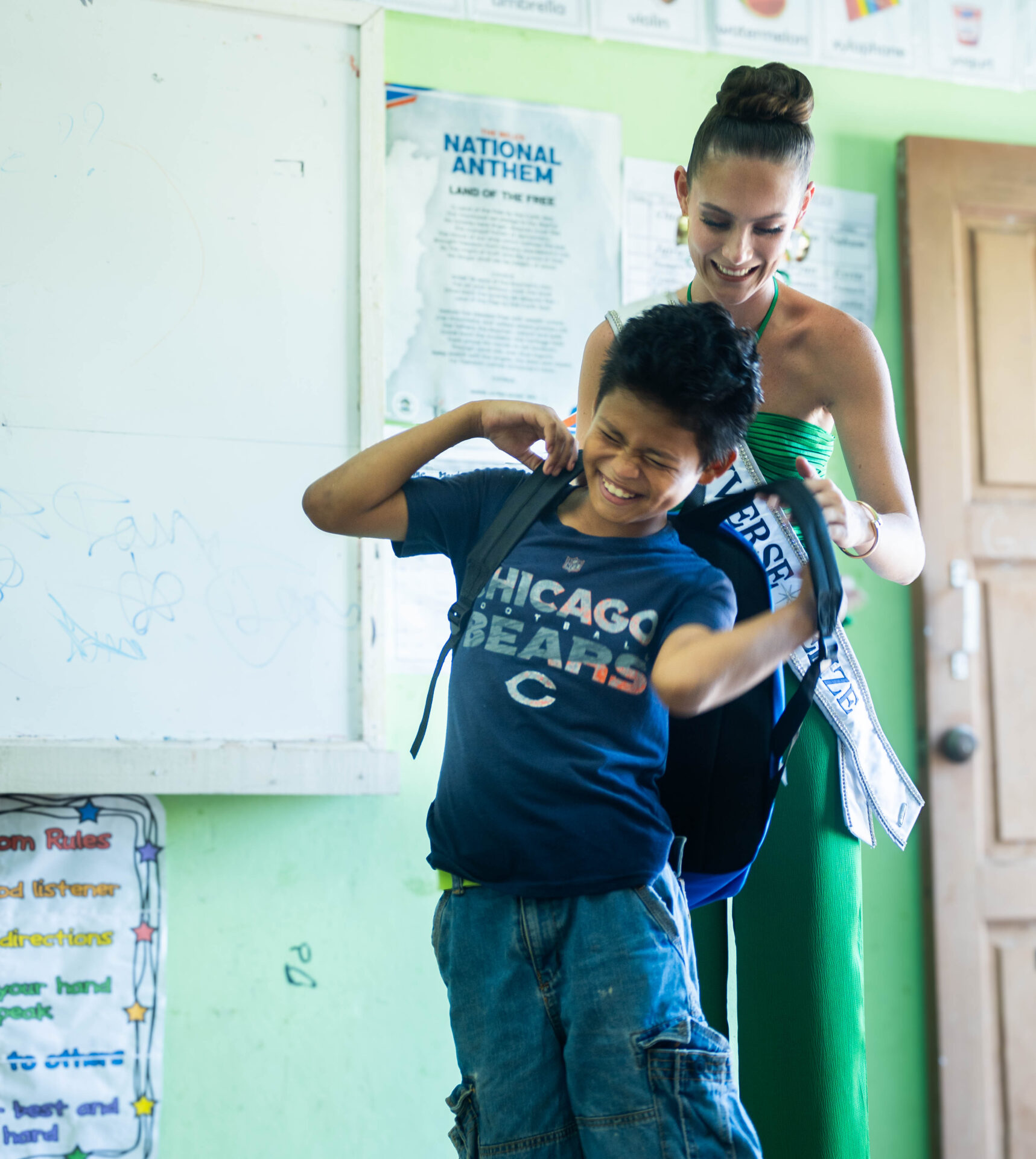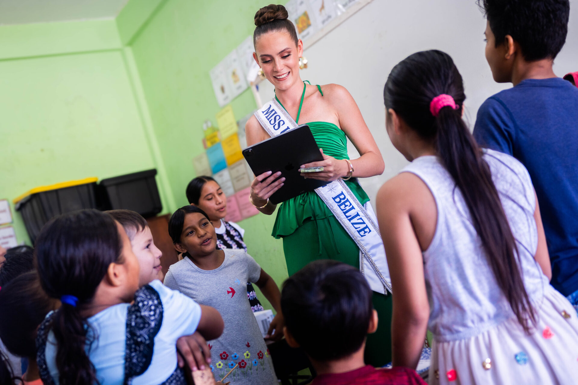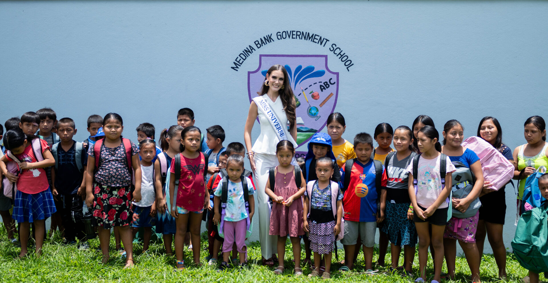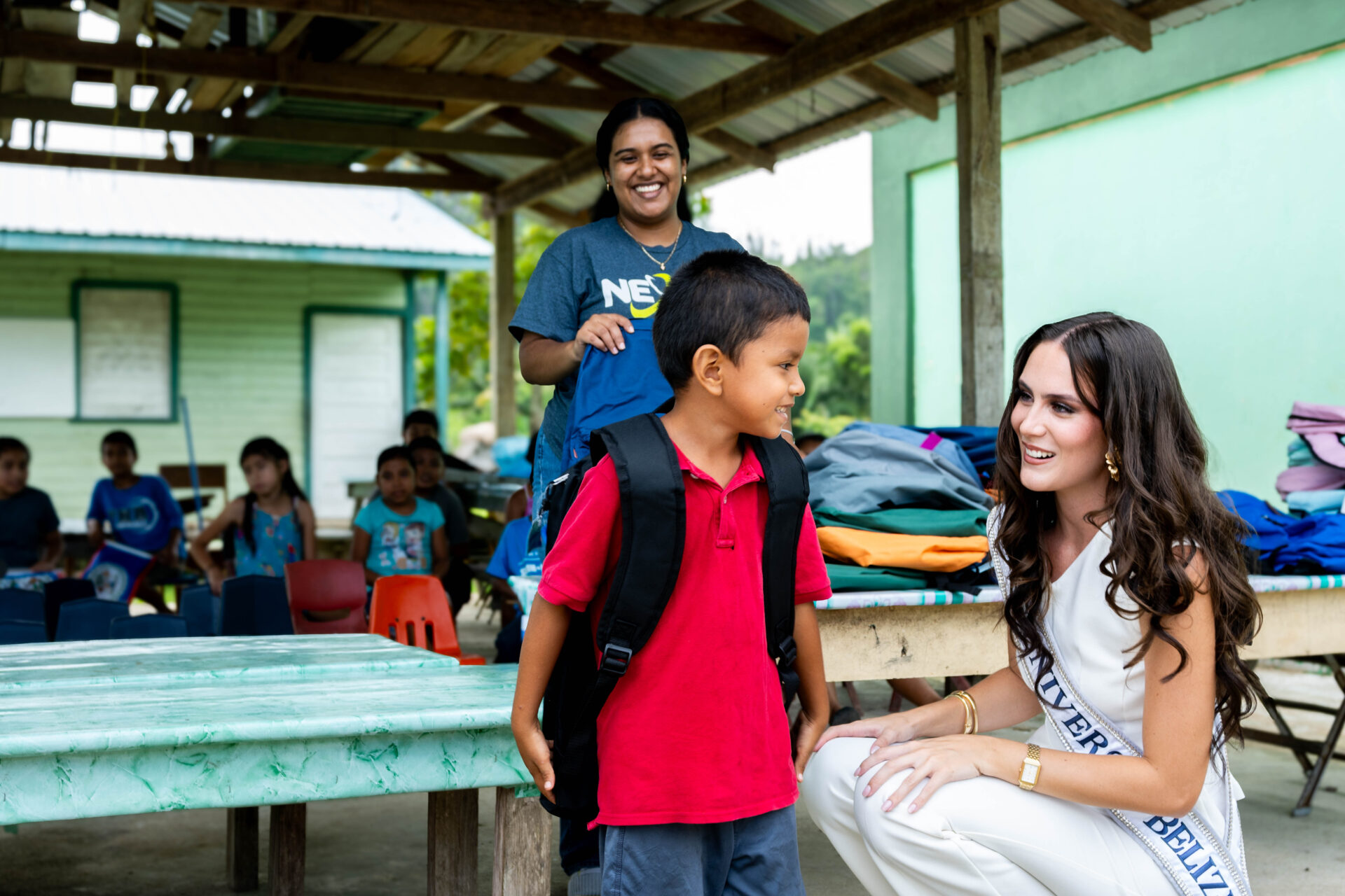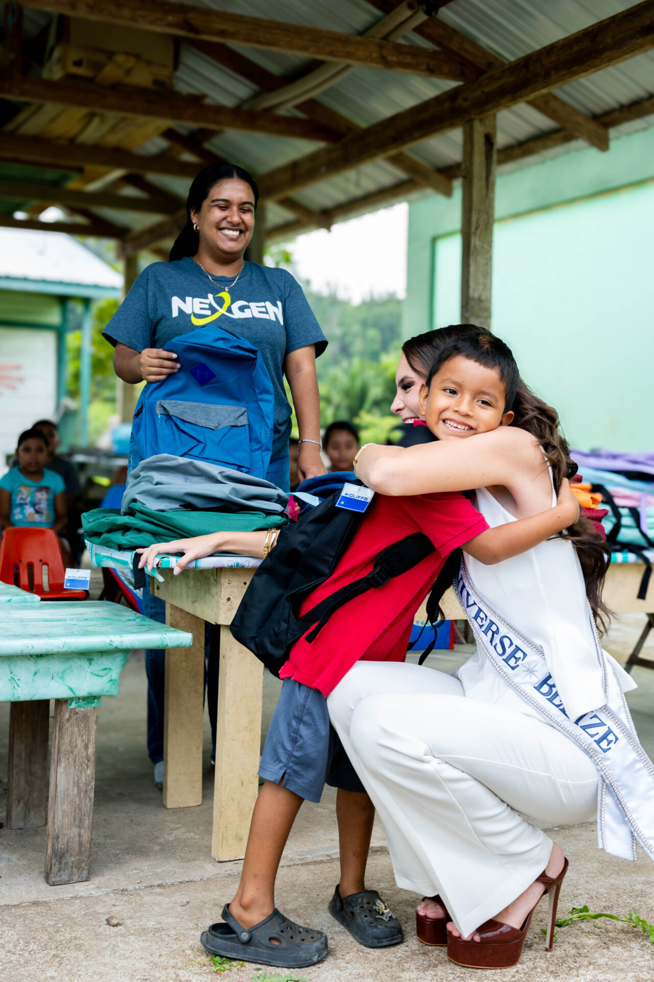 On Friday, August 8, 2025, 200 bags were distributed to students of San Felipe Government School and Medina Bank Government School. The students at each of these Toledo District schools welcomed Miss Universe Belize with open arms, bright smiles, and warm cheers of “Bella fi Belize”. In turn, Miss Universe Belize sat with the students and gave them words of upliftment with a reminder that the students are “capable, unstoppable, bold, smart, and loyal”. She remarked that one of the greatest privileges of her life was to encourage students to “step boldly into their futures.” Another 100 bags were provided to two schools in the Stann Creek Communities of San Felipe and Santa Cruz. On Saturday, 100 more bags were provided to students in the Cayo villages of Duck Run 1, Buena Vista, and Iguana Creek.